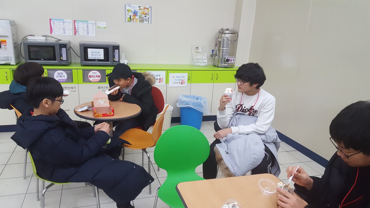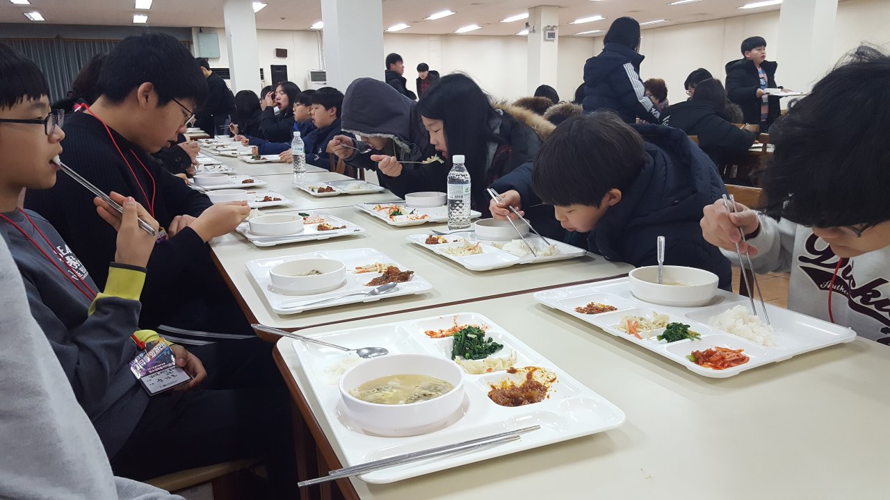 식사 시간에도 맨 먼저와 기다리는 부지런한 넘치는 교회 친구들