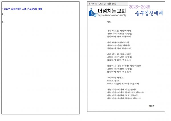 2025년 12월 31일 송구영신예배주보