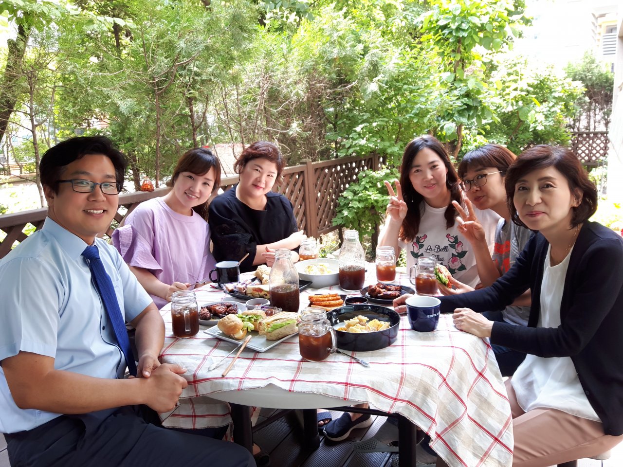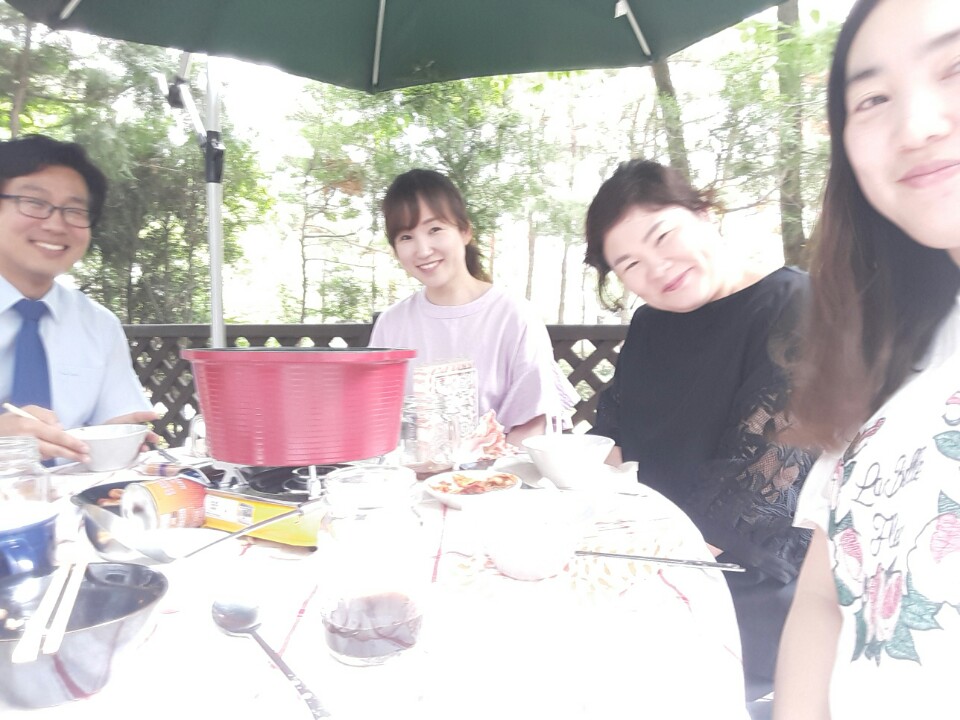 집 베란다에 있는 정원에서 맛있는 식사와 즐거운 교제를 했어요~~