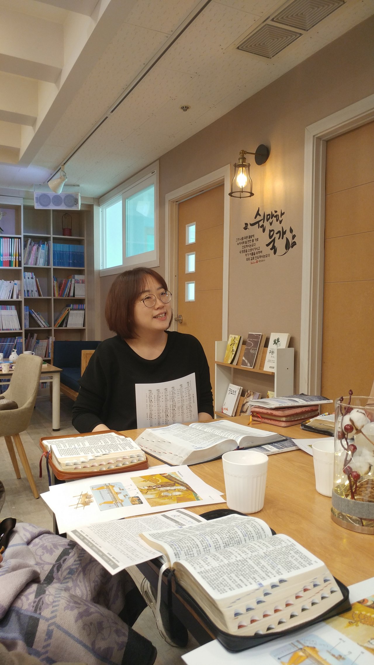 담백하게 구약의 세세한부분을 알기쉽게 알려주시는 사모님.늘 감사합니다. 환한 미소가 교회카페를 더 환하게 해주시네요~^^