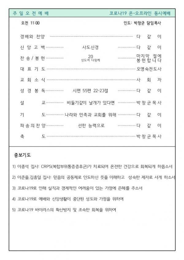 2020년 7월 5일 주보
