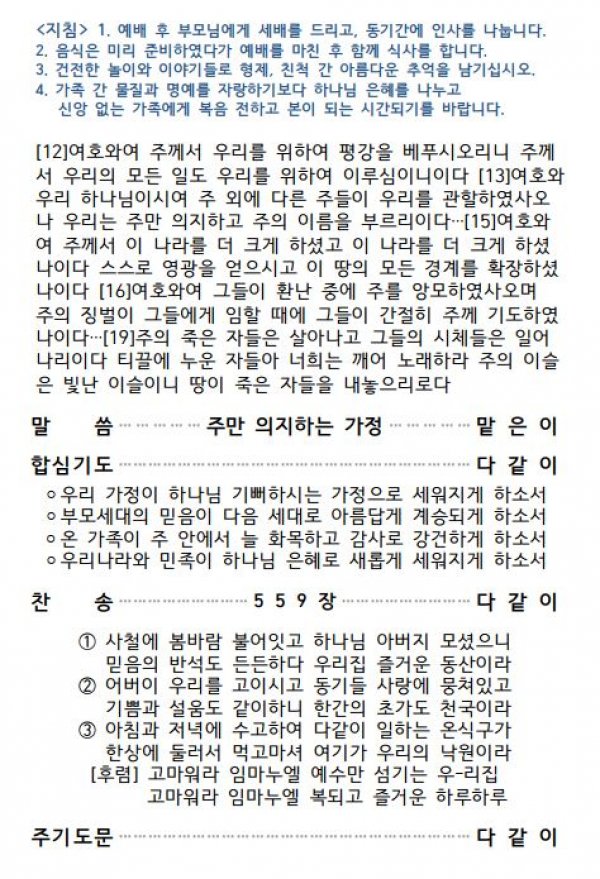 2020년 설날 가정예배 순서지