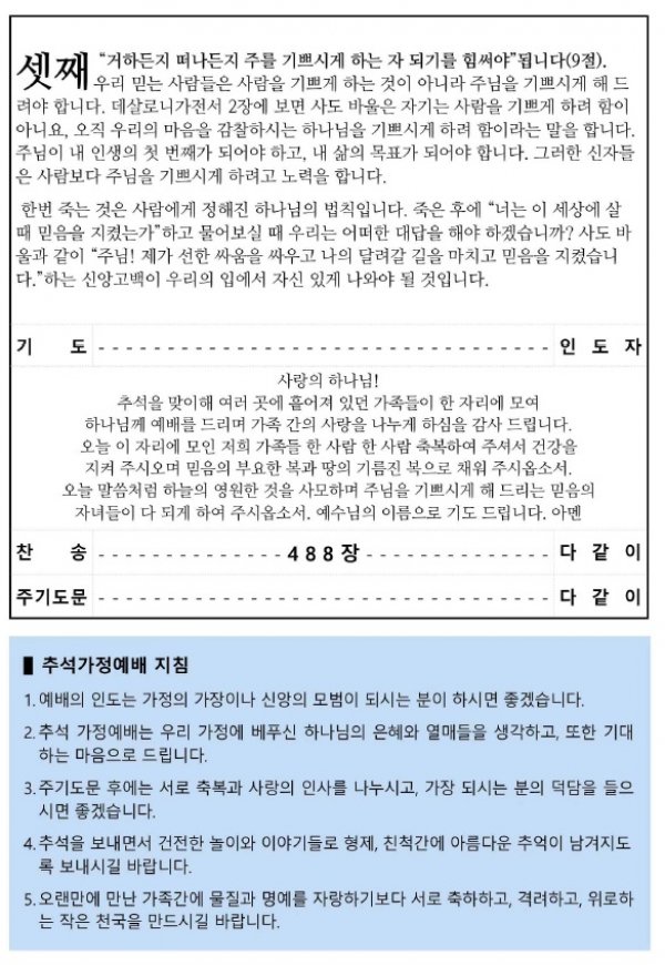 2017년 추석 가정예배 순서지